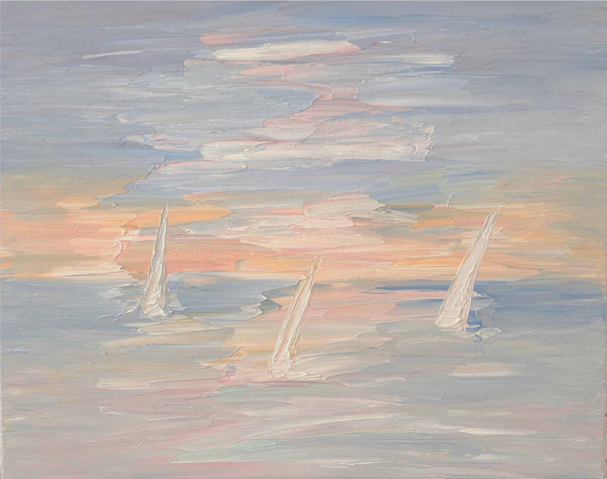 Abstract Horizon Sailboats Pink Sunset - SOLD