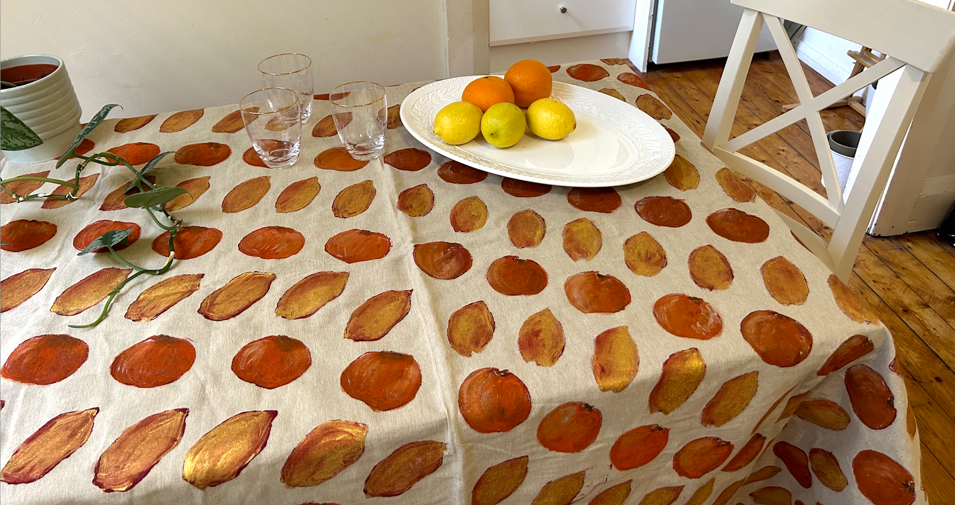 Double-lined Tablecloth in printed Oranges and Lemons design.
